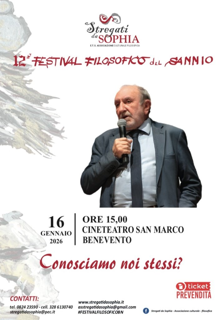 A tale scopo, l’Associazione culturale-filosofica “Stregati da Sophia” organizza il Festival Filosofico del Sannio, per promuovere una lettura multidimensionale della realtà, ritrovando lo spirito filosofico in ogni atto della nostra vita: nell’arte, nel teatro, nella letteratura, nella moda, nella cucina, nel cinema.