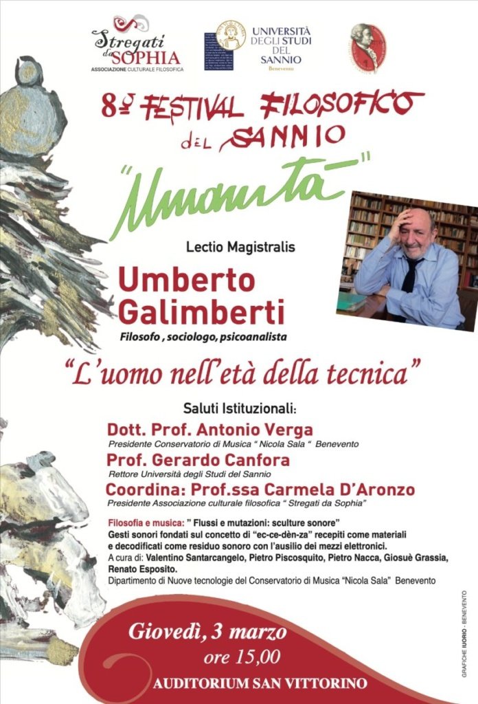 IL 3 Marzo alle ore 15,00 presso l’Auditorium San Vittorino la lectio Magistralis sarà affidata al prof. Umberto Galimberti che relazionerà sul tema:” L’uomo nell’età della tecnica”