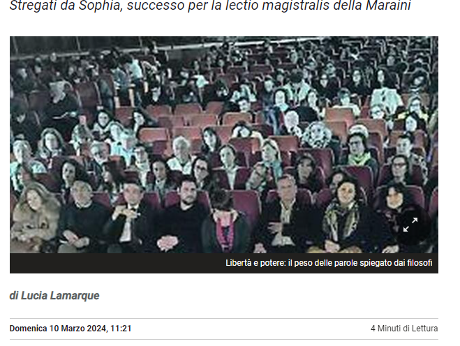 Giovedì 14 marzo 2024, si è tenuto al Teatro Comunale Vittorio Emanuele di Benevento, il quarto incontro del decimo Festival Filosofico del Sannio, organizzato dall’Associazione culturale filosofica “Stregati da Sophia”.